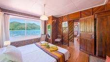 La Saline is a self-catering three bedroom villa located at Anse Possession, Praslin Island, Seychelles. The large covered veranda surrounds the house with sweeping views of the bay, Curieuse and Aride Island, giving direct access to swimming and snorkelling.